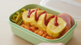 卵焼きは金曜日らしく、少し手の込んだ「彩り野菜の巻き巻き卵」を作ってみましょう。ほうれん草とにんじんを細かく刻んで卵液に混ぜ込み、薄焼き卵を何層にも重ねて巻いていきます。断面に現れる緑と橙の色合いが、お弁当を華やかに演出してくれます。