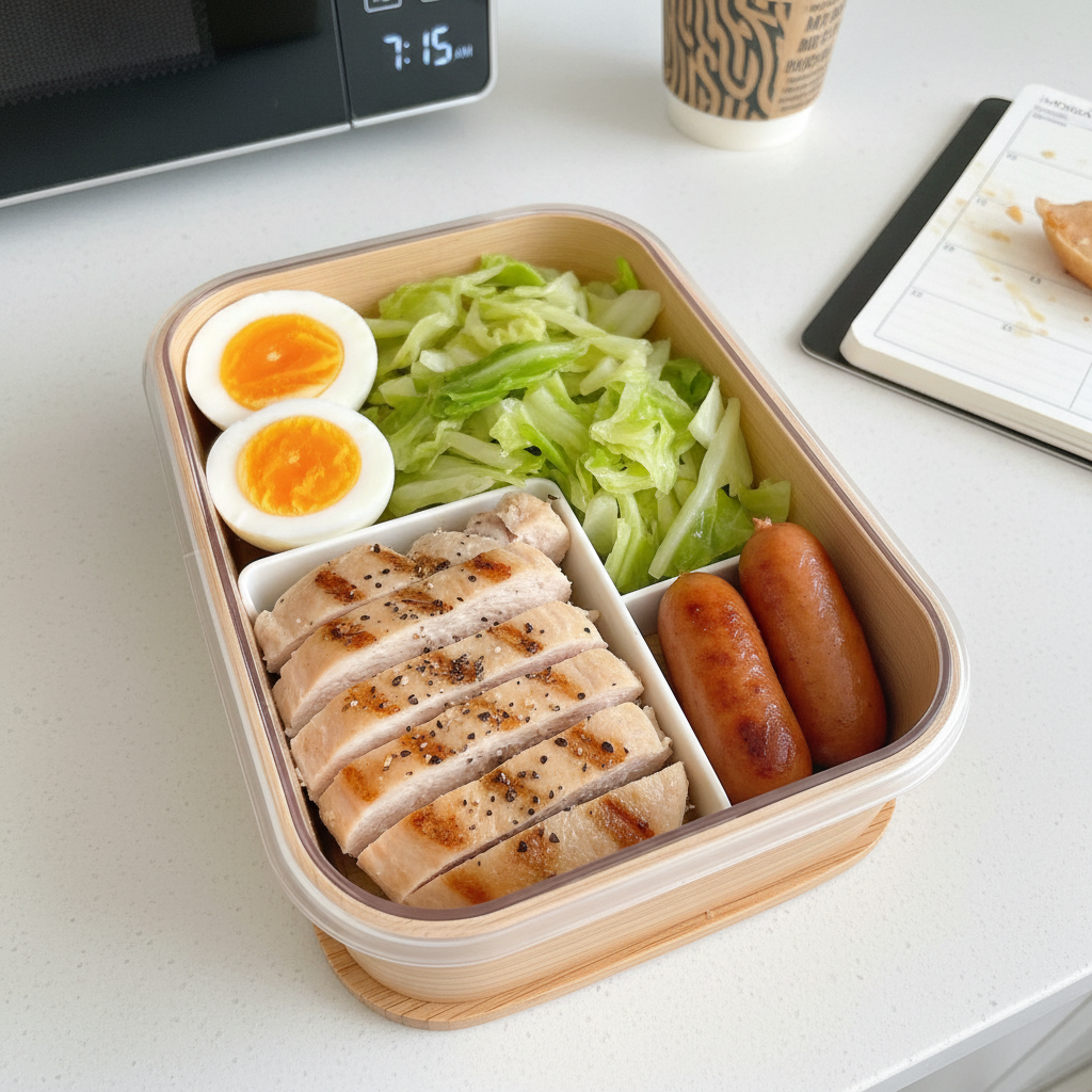 月曜日のお弁当って、妙に気合い入れたくなるんだよね。週の始まりだし、ちゃんとしたものを持っていけば午後の会議も乗り切れる気がして。でも正直に言うと、そういう「ちゃんとした弁当」を作ろうとすると大体失敗する。彩りを考えて、栄養バランスを意識して、SNSで見たようなおしゃれな詰め方を真似しようとして——結局時間切れで、コンビニおにぎりを買う羽目になる。
