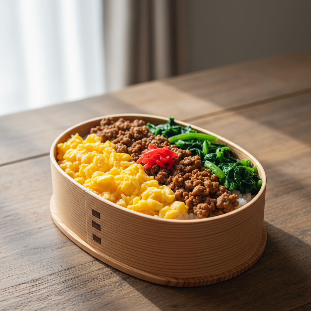 忙しい朝でも作れる水曜日のおべんとうレシピをご紹介しましょう。まずおすすめしたいのが「彩り三色丼」です。ご飯の上に、炒り卵、鶏そぼろ、茹でたほうれん草やブロッコリーを並べるだけのシンプルな一品。鶏そぼろは前日の夜に多めに作っておけば、朝は温め直すだけで完成します。醤油、砂糖、みりん、生姜で味付けした鶏ひき肉は、冷めても美味しく、会社のランチタイムに食べるときにもしっかりとした味わいが楽しめます。炒り卵は砂糖を少し多めに入れると、優しい甘さが疲れた体に染み渡ります。
