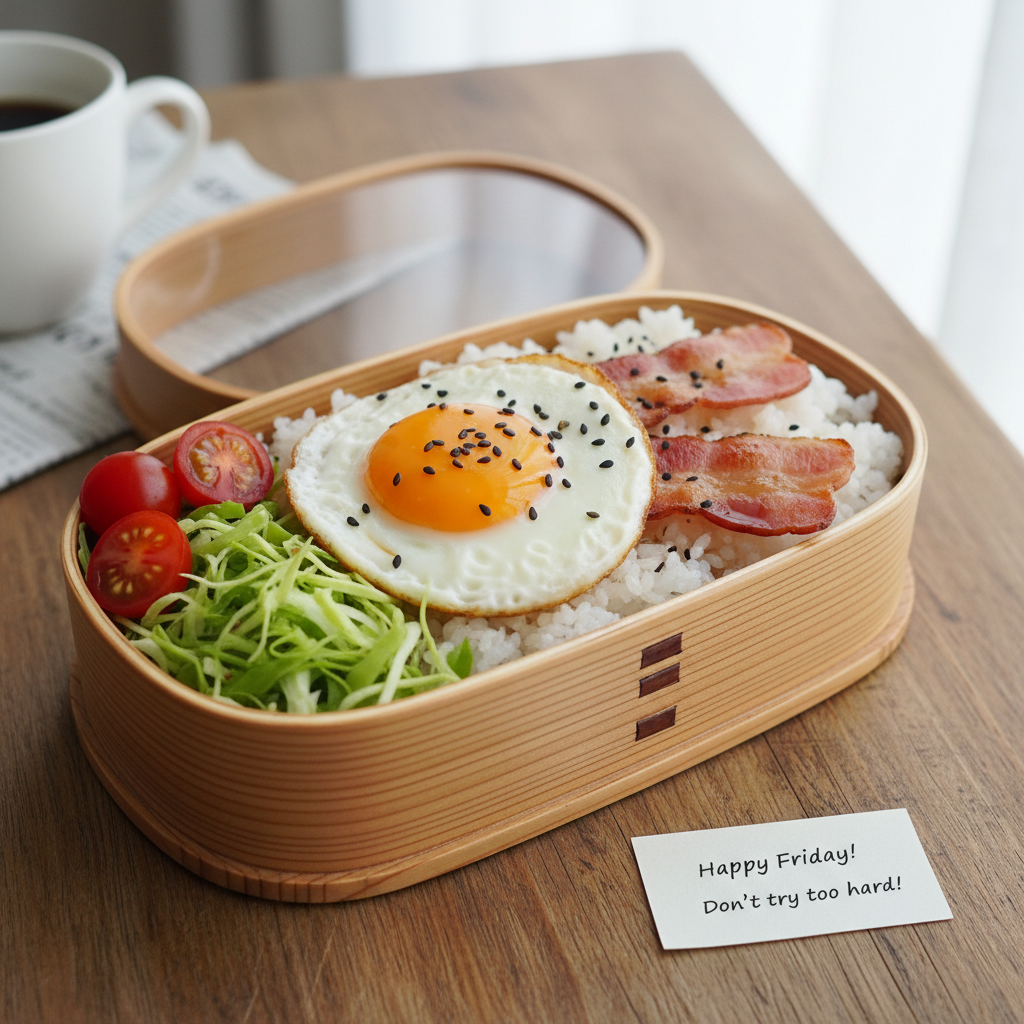 結局のところ、金曜日の弁当作りで大切なのは「明日は休みだ」っていう魔法の言葉を唱えることかもしれない。この言葉があれば、卵焼き一本でも許せるし、おにぎり二個でも満足できる。週末への期待感が、どんな質素な弁当も美味しくしてくれる。