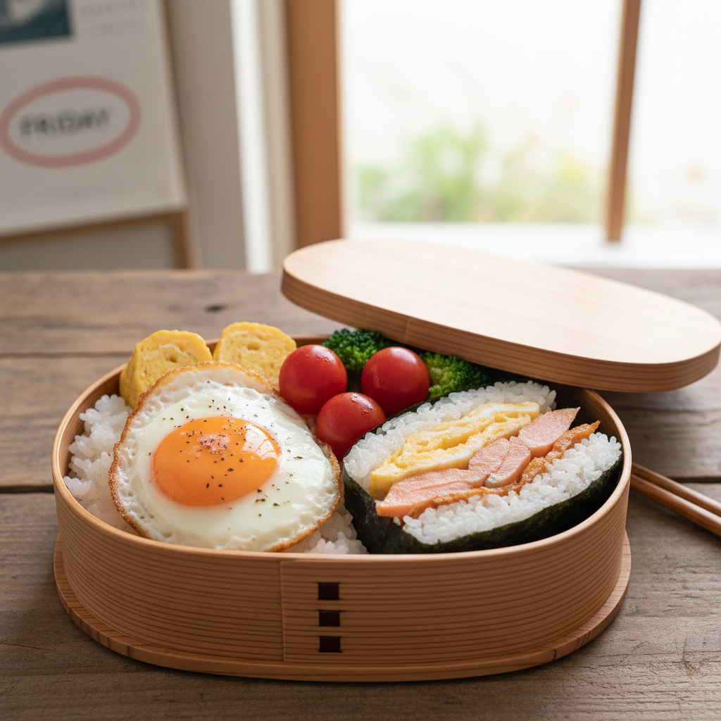 これ、本当に救われる。朝起きて、ご飯を詰めて、卵を適当に焼く。味付けは醤油でもめんつゆでもマヨネーズでも、その日の気分で決める。で、冷蔵庫に転がってる野菜を何か一つ放り込む。ブロッコリーの茹で置きがあればラッキーだし、なければプチトマトを洗って突っ込むだけ。これで完成。所要時間7分。包丁すら使わない日もある。卵焼きを作る元気があれば作るし、なければ目玉焼きを崩してご飯に乗せる。それだけ。